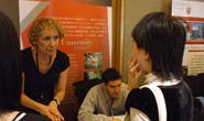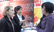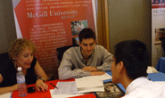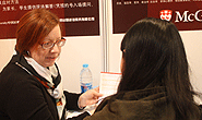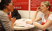 在麦吉尔大学招生官再CACEF展会上对上师出国留学引荐的学生进行咨询和指导