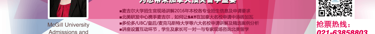 引领加拿大顶尖名校之路追“枫”行动 势在必得。 麦吉尔大学招生主任Mrs Kim Bartlett 受邀再次来沪举办招生说明会。